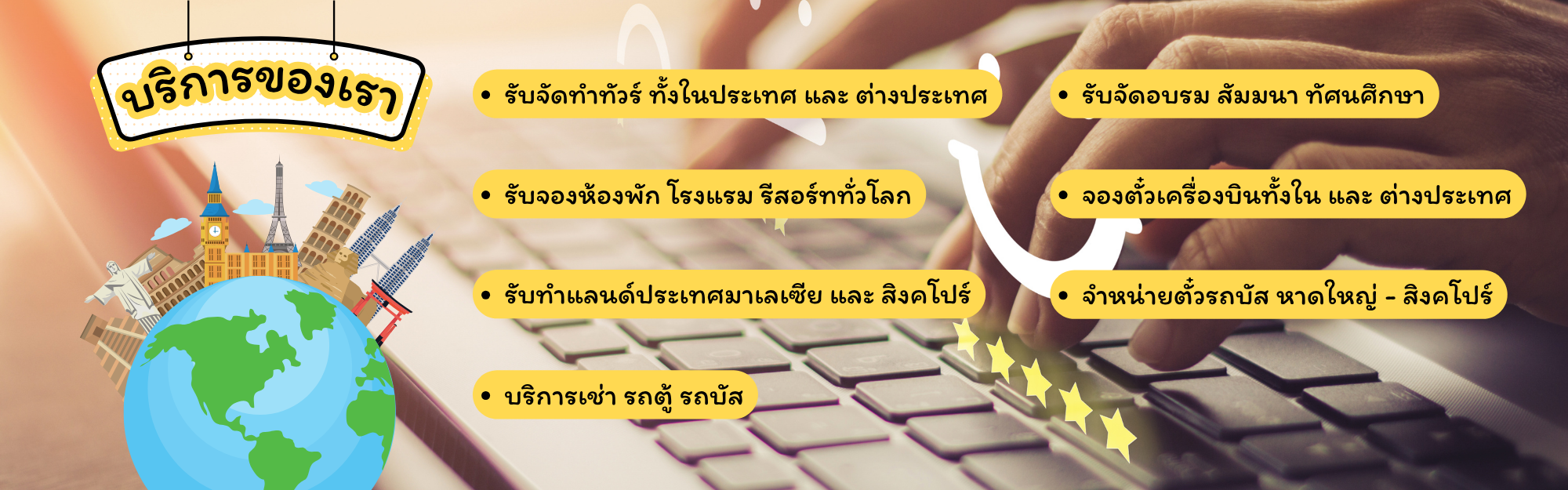 ผู้นำด้านการให้บริการท่องเที่ยวและเดินทางระดับแนวหน้าของเมืองหาดใหญ่ ให้คุณมีความสุข สนุกกับทุกทริปการเดินทาง ด้วย การบริการคุณภาพคุ้มราคา ประทับใจกับทีมงาน และไกด์มืออาชีพ