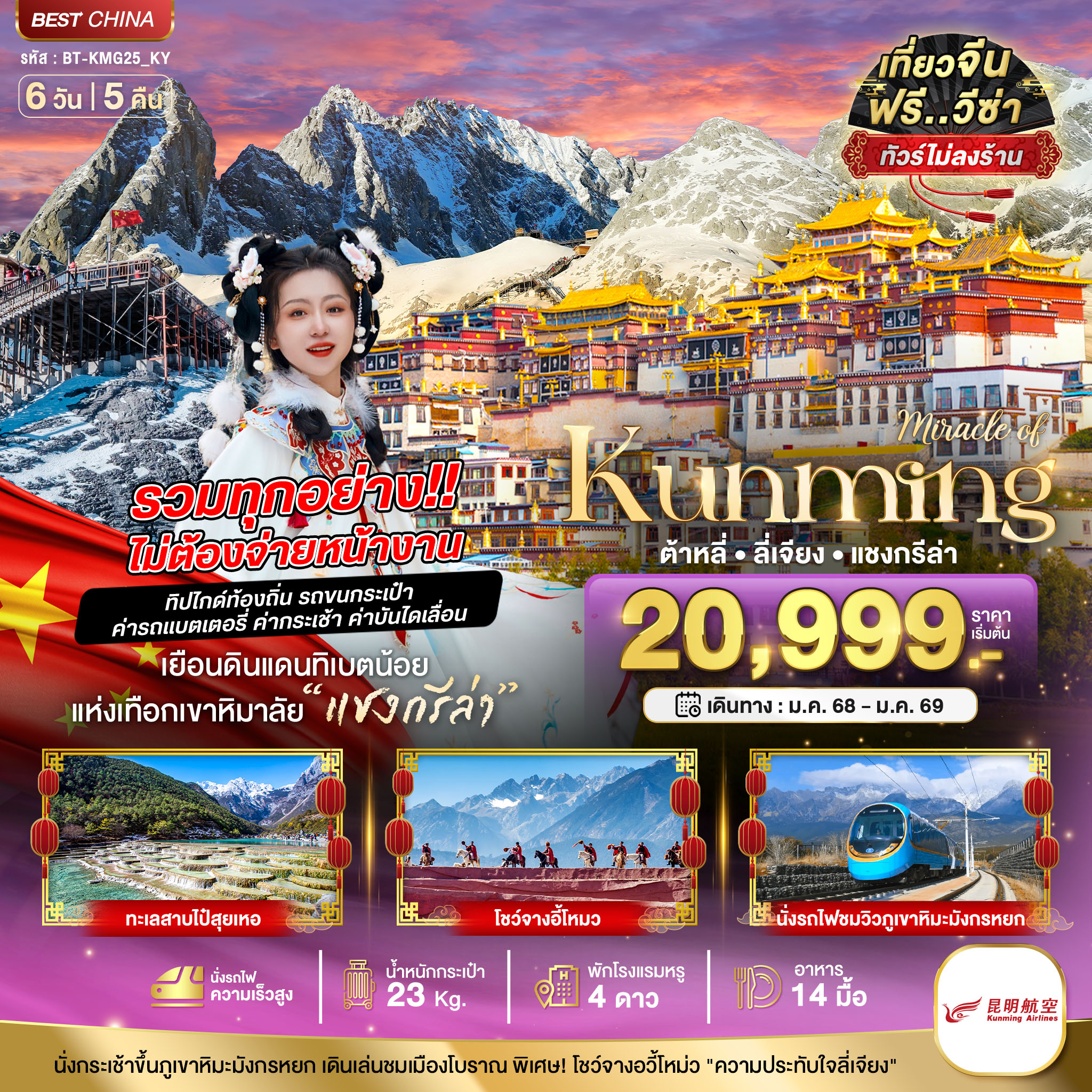 คุนหมิง ต้าหลี่ แชงกรีล่า ลี่เจียง6 วัน 5 คืน